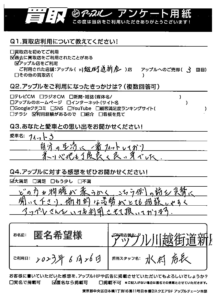匿名希望様 車名:ホンダ フィット(H25年9月以降のハイブリッド含む)