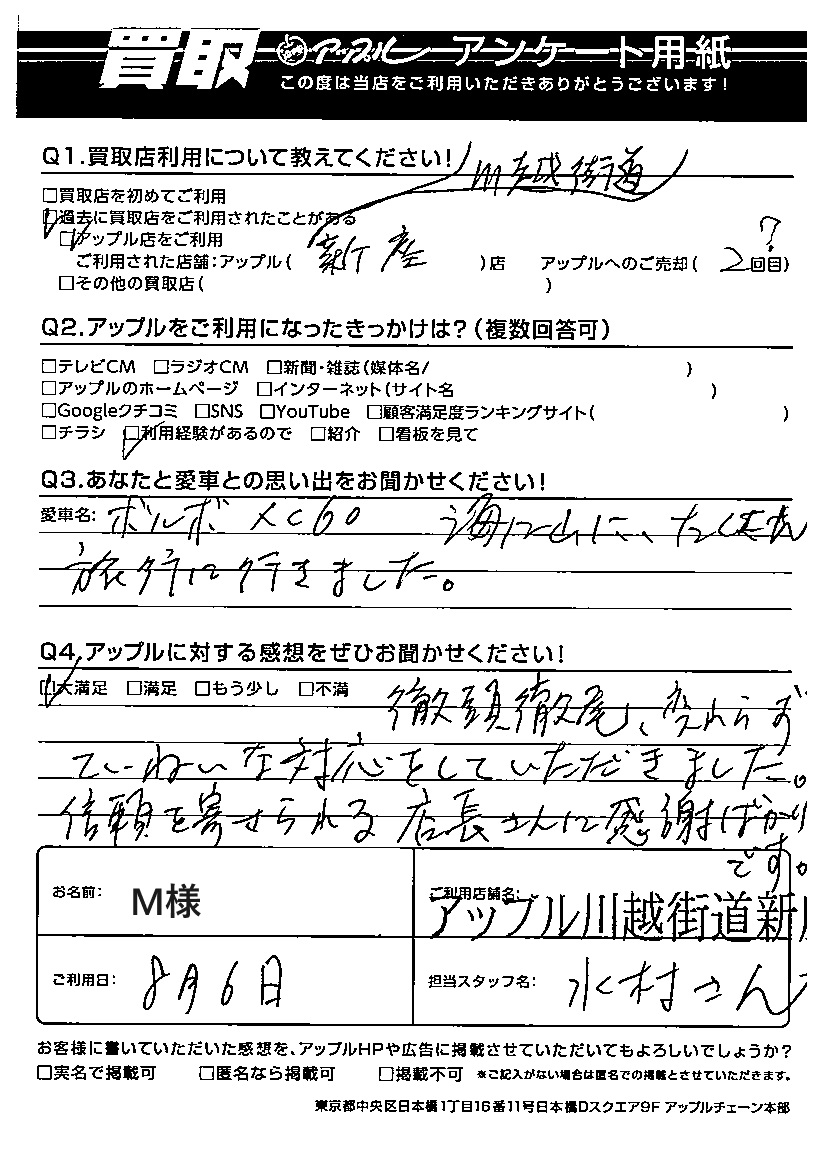 徹頭徹尾、変わらずていねいな対応をしていただきました。