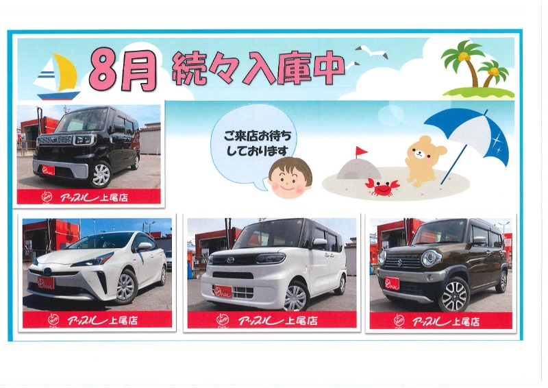 お車のご相談・ 査定だけでもOK! カンタン 入力 30秒 アップルがブランド買取始めました! お電話でも受付中! 受付時間10時 ~ 18時(最終受付17時) 048-772-2336 お車のご相談・ 査定だけでもOK! カンタン 入力 30秒 アップルがブランド買取始めました! お電話でも受付中! 受付時間10時 ~ 18時(最終受付17時) 048-772-2336 アップルがブランド買取始めました! お電話でも受付中! 受付時間10時 ~ 18時(最終受付17時) 048-772-2336 店舗情報 在庫車 スタッフ紹介 ブログ お客様の声 キャンペーン お得 無料査定 click [ 入庫情報 ] 2024/08/13 (火) 15:30 8月も続々入庫中 こんにちは!お車が多数入荷いたしました!店頭に販売車両展示しておりますので、ぜひご覧になってください!!アップル上尾店では、買取入庫のお車展示しております☺ご売却&ご登録等、すぐに対応いたします☆ぜひ、ご相談&お気軽にご連絡ください(^^♪TEL:048-772-2336まで!・・・・・・・・・・皆様のご来店を心よりお待ちしております(*´ω`) 2024-08-13 15:30:15 新しい記事へ 古い記事へ 最新記事 ☆★☆★☆GWの営業時間のお知らせ☆★☆★☆アルファードが入荷しました!!ランドクルーザープラドを買取させていただきました!!車が足りません…!本気で買取強化中です!ハイラックスサーフを買取させていただきました!! 店舗情報に戻る 月別アーカイブ 2026年04月(1)2026年03月(3)2026年02月(4)2026年01月(3)2025年12月(1)2025年11月(2)2025年10月(2)2025年09月(3)2025年05月(1)2025年04月(1)2024年10月(5)2024年09月(5)2024年08月(5)2024年07月(5)2024年06月(5)2024年05月(5)2024年04月(1)2023年12月(1)2023年10月(1)2023年08月(1)2023年06月(2)2023年05月(2)2023年04月(3)2023年03月(2)2023年02月(3)2023年01月(3)2022年12月(5)2022年11月(1)2022年10月(3)2022年09月(1)