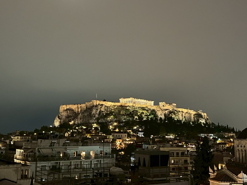 オレンジ色の光に浮かび上がるパルテノン神殿を眺めながら、古代の時代に思いを馳せてしまいました。