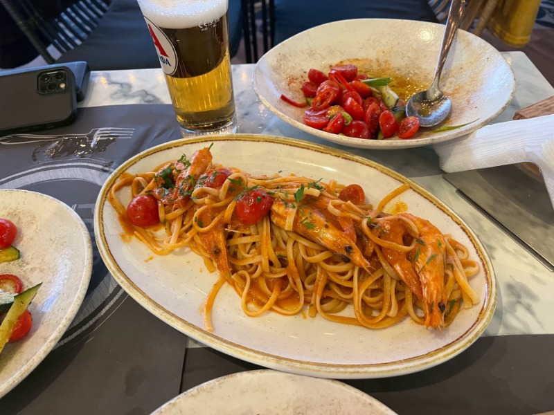 海辺のレストランでいただいたシーフードパスタは、今思い出してもお腹がすいてしまいます。