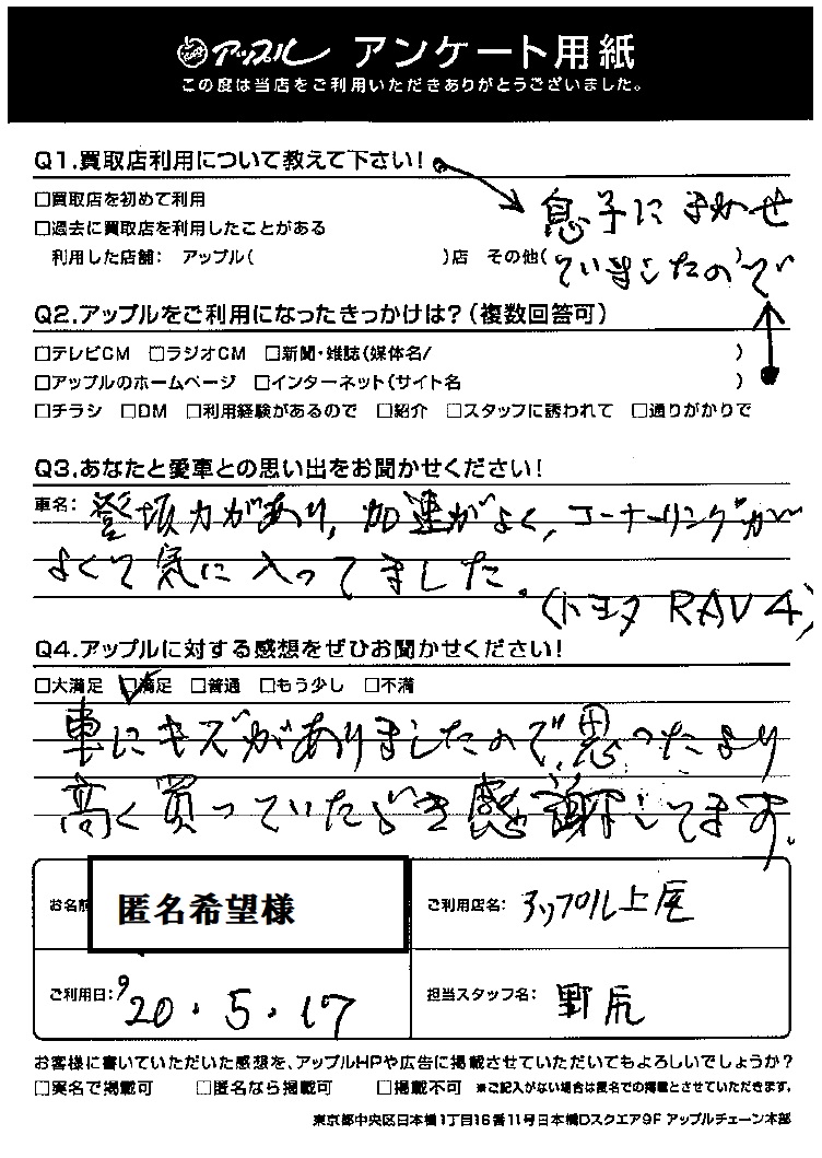 Y様 車名:トヨタ RAV4(R04年10月~RAV4 PHV含む)