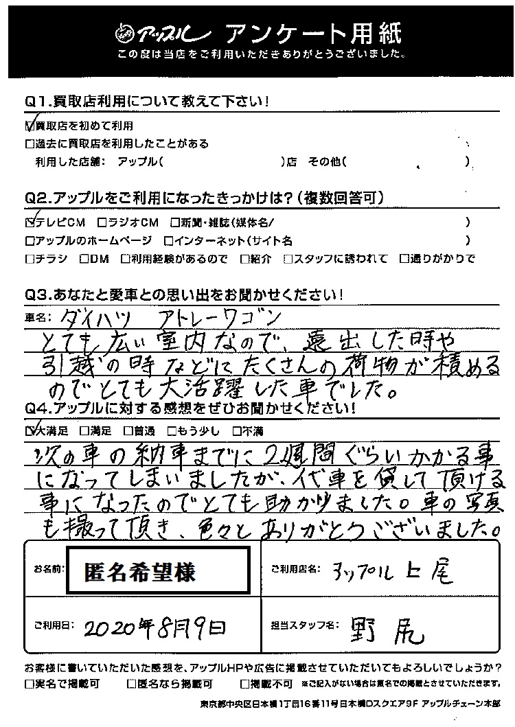 O様、このたびはアンケートにご協力いただきありがとうございます。