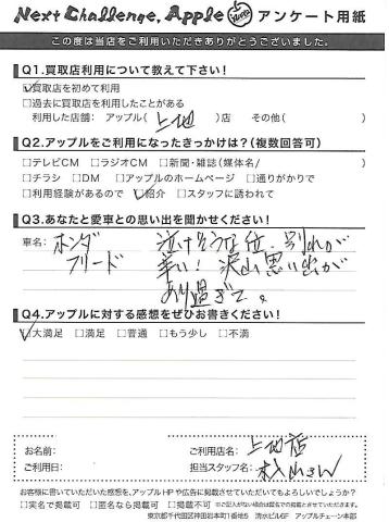 お車のご相談・ 査定だけでもOK! カンタン 入力 30秒 アップルがブランド買取始めました! お電話でも受付中! 受付時間10:00 ~ 19:00 0564-57-0123 お車のご相談・ 査定だけでもOK! カンタン 入力 30秒 アップルがブランド買取始めました! お電話でも受付中! 受付時間10:00 ~ 19:00 0564-57-0123 アップルがブランド買取始めました! お電話でも受付中! 受付時間10:00 ~ 19:00 0564-57-0123 店舗情報 在庫車 スタッフ紹介 ブログ お客様の声 キャンペーン 無料査定 click お客様の声 ご記入日: 2015/03/22 匿名希望様 ★あなたと愛車との思い出を聞かせて下さい!!車名 (フリード)泣けそうなくらい別れが辛い!沢山思い出がありすぎて!!★アップルに対する感想!大満足!! 前へ 次へ お客様の声一覧を見る