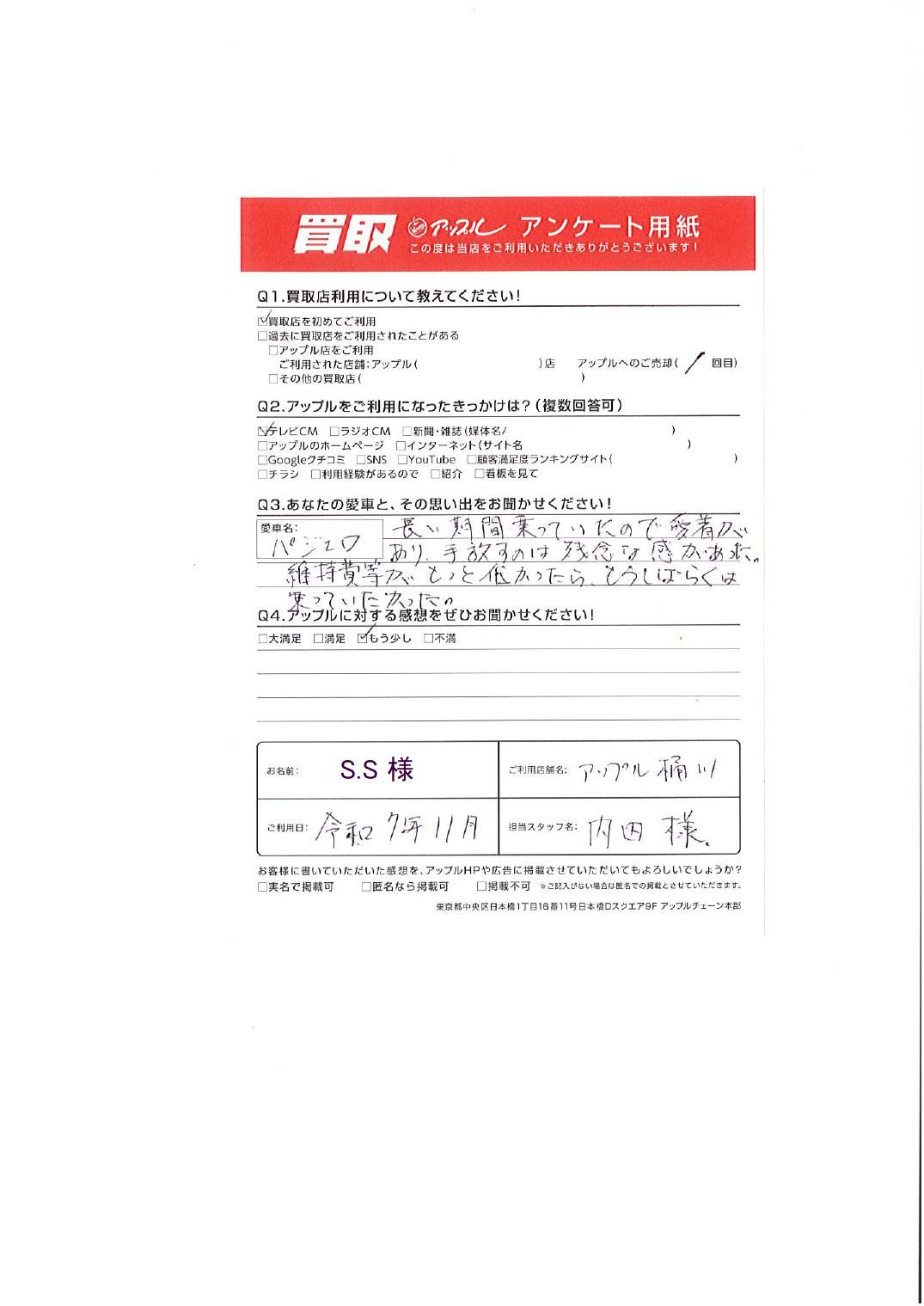お車のご相談・ 査定だけでもOK! カンタン 入力 30秒 アップルがブランド買取始めました! お電話でも受付中! 受付時間9:30 ~ 19:00 048-783-2474 お車のご相談・ 査定だけでもOK! カンタン 入力 30秒 アップルがブランド買取始めました! お電話でも受付中! 受付時間9:30 ~ 19:00 048-783-2474 アップルがブランド買取始めました! お電話でも受付中! 受付時間9:30 ~ 19:00 048-783-2474 店舗情報 在庫車 スタッフ紹介 ブログ お客様の声 キャンペーン お得 無料査定 click お客様の声 ご記入日: 2025/10/29 埼玉県北本市 S・S様 車名:三菱 パジェロ ・あなたの愛車との思い出長い期間乗っていたので愛着があり、手放すのは残念な感があった。維持費等がもっと低かったらもうしばらくは乗っていたかった。・アップルに対する感想 前へ 次へ お客様の声一覧を見る
