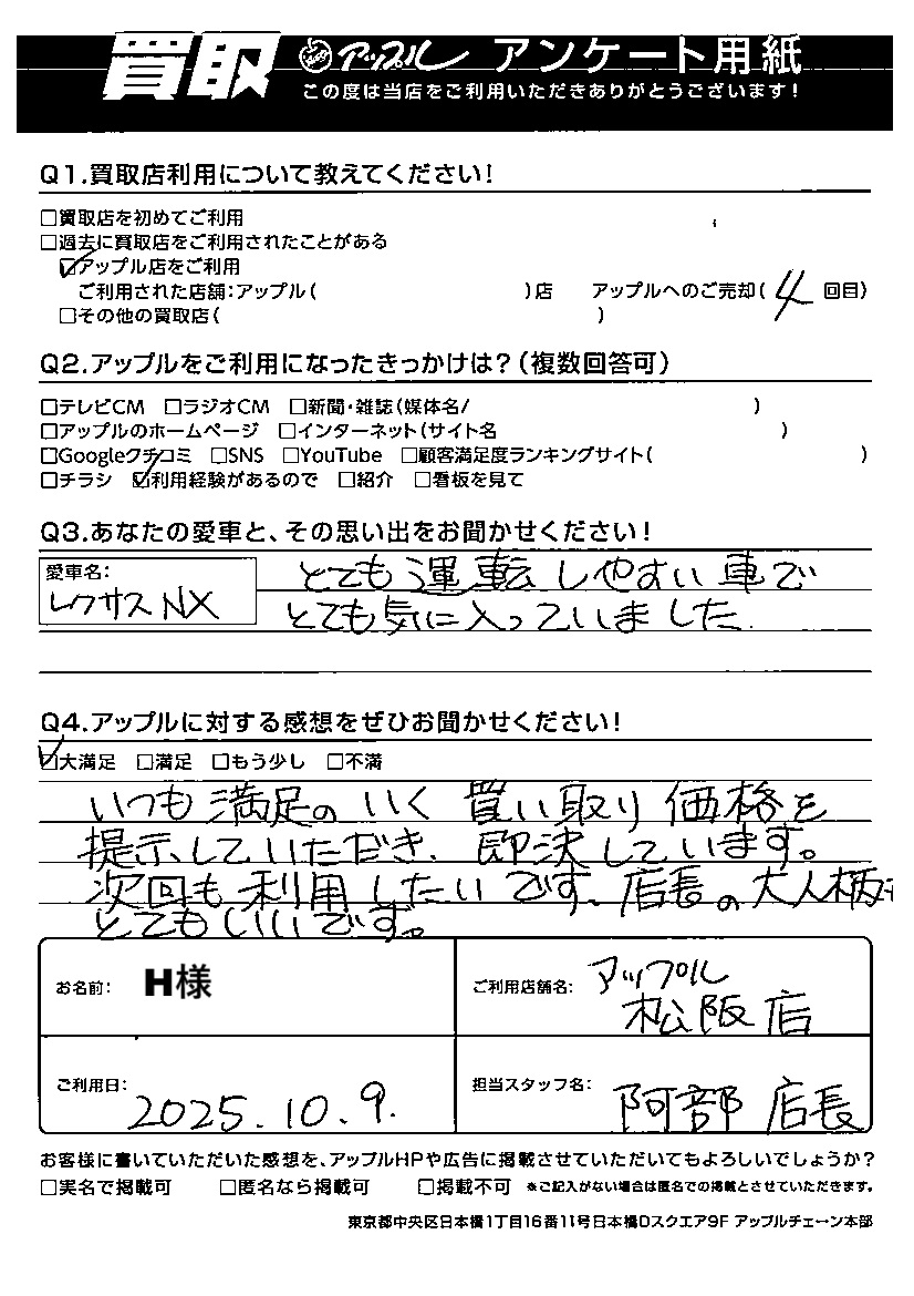 ご利用日:2025/10/09 H 様