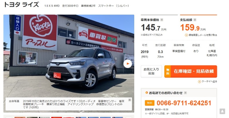 なんと、今現在で札幌市内に中古車としてライズがあるのは当店だけ!