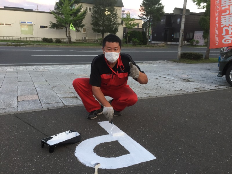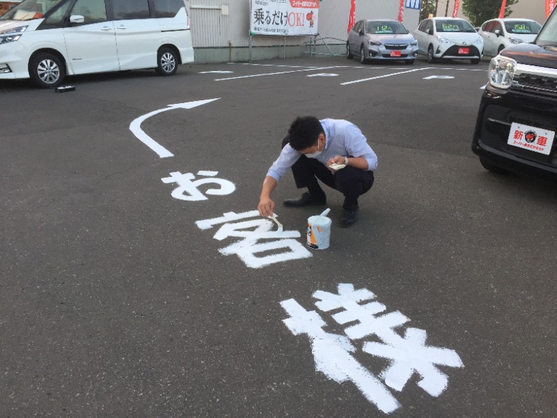 昨日は閉店前にお店の駐車場のライン引きを行いました。