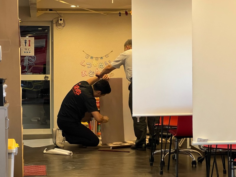 お昼過ぎから清田店の小山内店長が電動ドリルでウィーンウィーンと