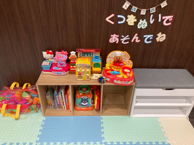 キッズスペースで遊びまわるお子様を、