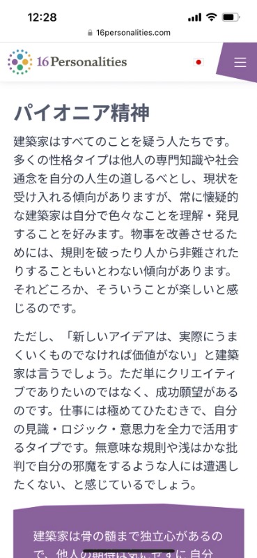 早速やってみると私は「建築家」タイプでした!