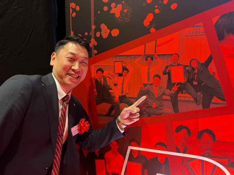 ↑ステージパネルに写っていた我々の写真をみて「うちが一番だな」とご満悦のおっさー店長