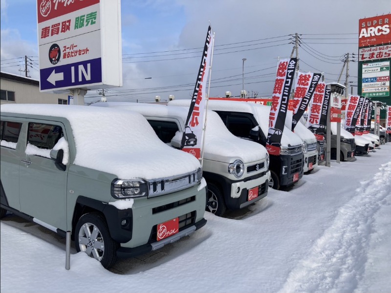 当店では展示車両の雪下ろしと雪かきが毎朝の日課となります!