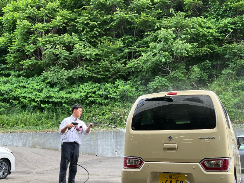 私がやっていた洗車を手伝ってくれました。