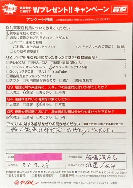 Q.アップルの感想は? A.誠心誠意の御対応 ありがとうございました。