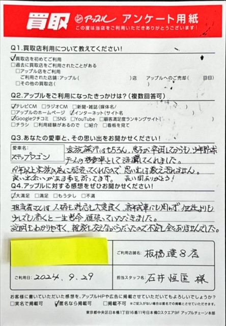 東京都豊島区 匿名希望様  車名:ホンダ ステップワゴン