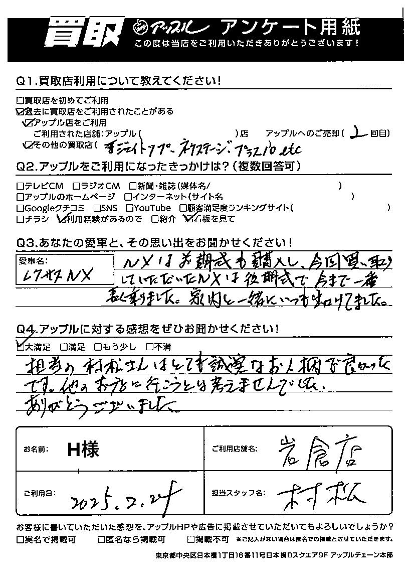 H 様 担当:村松