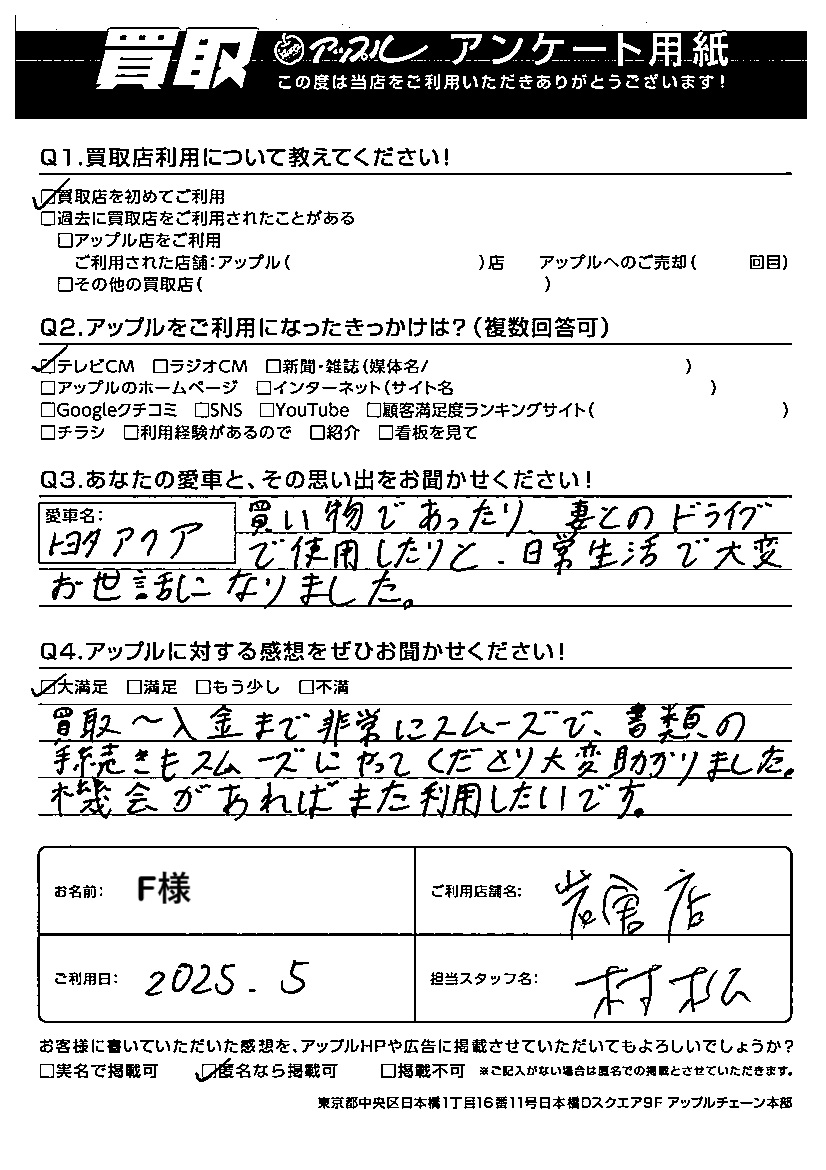 買い換え~入金まで非常にスムーズで、書類の手続きも