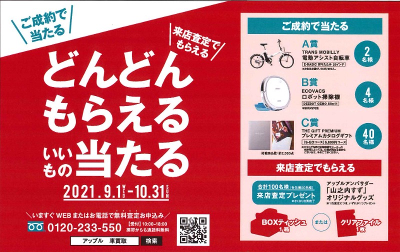 お車のご相談・ 査定だけでもOK! カンタン 入力 30秒 アップルがブランド買取始めました! お電話でも受付中! 受付時間10:00~19:00 0265-73-2521 お車のご相談・ 査定だけでもOK! カンタン 入力 30秒 アップルがブランド買取始めました! お電話でも受付中! 受付時間10:00~19:00 0265-73-2521 アップルがブランド買取始めました! お電話でも受付中! 受付時間10:00~19:00 0265-73-2521 店舗情報 在庫車 スタッフ紹介 ブログ お客様の声 キャンペーン 無料査定 click [ つぶやき ] 2021/09/03 (金) 15:29 新キャンペーン始まりました♪ コンニチハ☆店長の五井です☆9月~10月末まで無料査定だけでも『山之内すず』のグッズかもらえます☆アップル伊那店のみ!さらに食器用洗剤やマスク、ハンドソープ等ももらえちゃいます!!ぜひ買取査定にご来店ください(^^♪(査定だけでももちろんOK!無料で行っております!お待ちの間はドリンクサービス☆) 2021-09-03 15:29:45 新しい記事へ 古い記事へ 最新記事 ☆祝納車・ワゴンR☆☆祝納車・新車スペーシア☆☆祝納車・新車スイフト☆☆祝納車・新車ハスラー☆☆祝納車・ワゴンR☆ 店舗情報に戻る 月別アーカイブ 2024年08月(2)2024年07月(3)2024年05月(1)2024年02月(1)2023年12月(4)2023年11月(1)2023年10月(4)2023年09月(1)2023年08月(2)2023年07月(5)2023年06月(3)2023年04月(4)2023年03月(1)2023年02月(3)2022年12月(1)2022年11月(1)2022年07月(3)2022年05月(2)2022年04月(2)2022年01月(1)2021年12月(1)2021年11月(1)2021年10月(4)2021年09月(3)2021年08月(5)2021年07月(3)2021年05月(5)