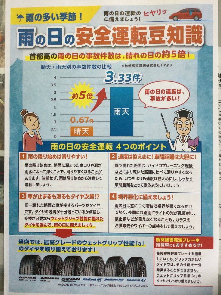 タイヤは雨の日の性能で選ぶと安心ですよ
