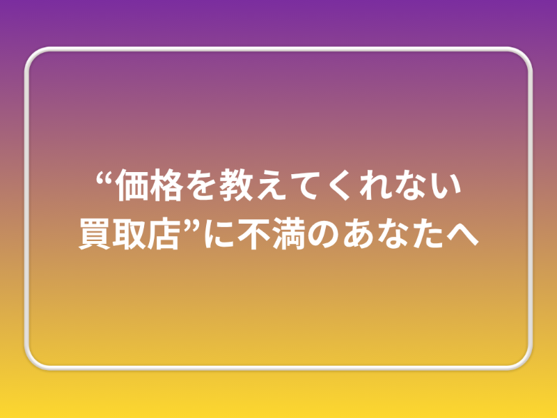 「価格を教えてくれない買取店」への不安、一問一答で解消!