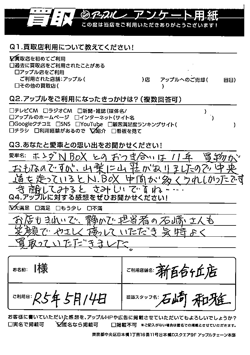 お店もきれいで静かで担当者の石崎さんも笑顔でやさしく