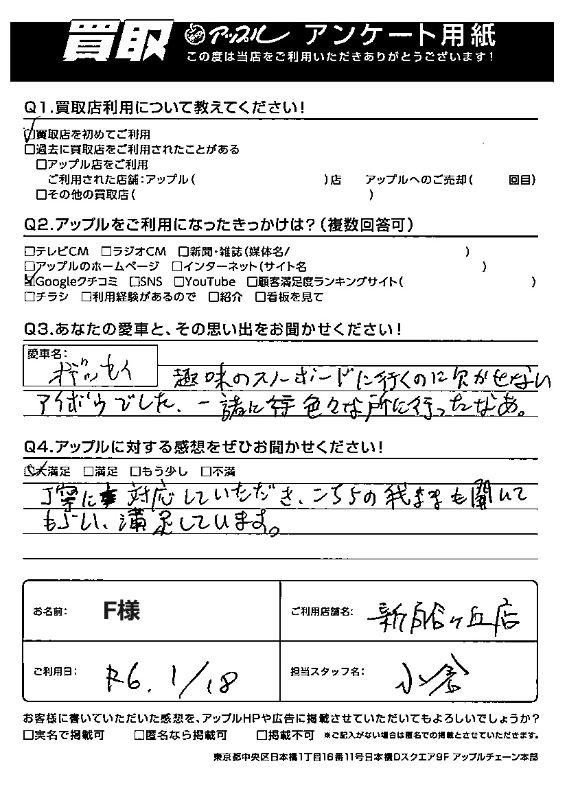 電話をしてからすぐに査定に来て下さって、その日のうちに