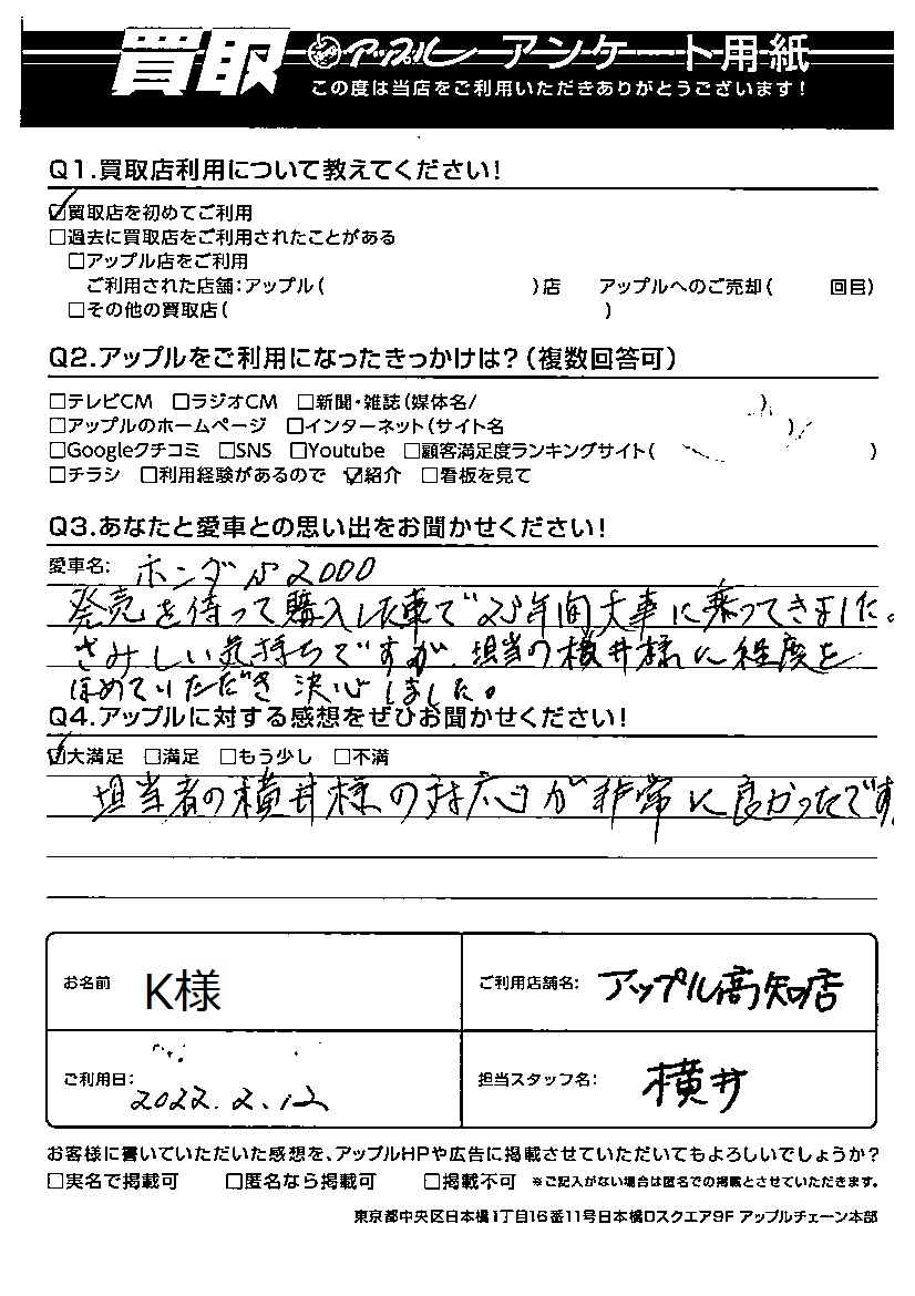 さみしい気持ちですが担当の横井様に程度をほめていただき決心しました。