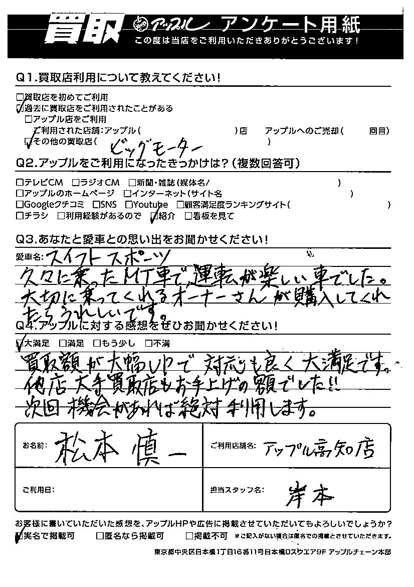 松本 慎一様 車名:スズキ スイフト