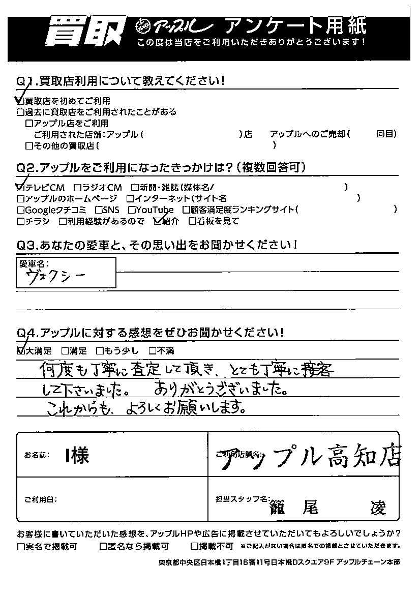 I様 車名:トヨタ ヴォクシー