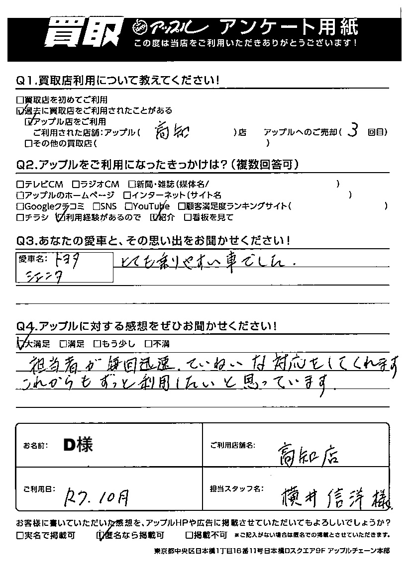 担当者が毎回迅速、ていねいな対応をしてくれます。これからもずっと利用したいと思っています。