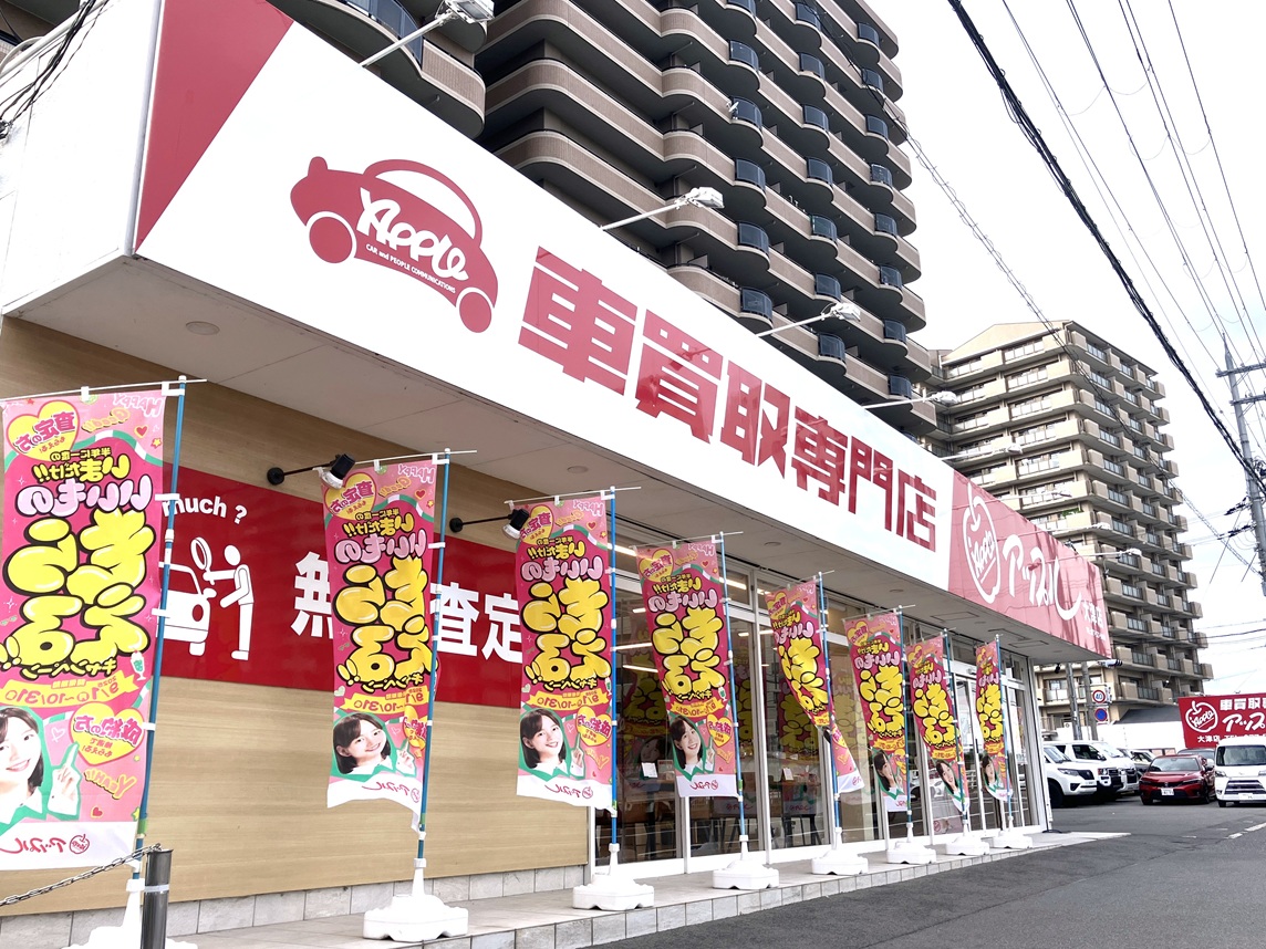 BOATRACEびわこから500m程直進、かっぱ寿司を超えた尾花川北の交差点角に、アップル大津店がございます。