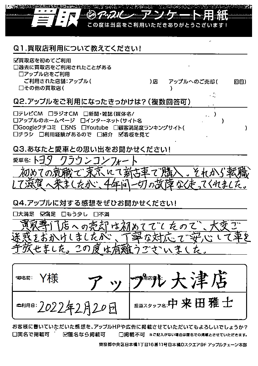 愛車名:クラウンコンフォート 担当:中来田雅士