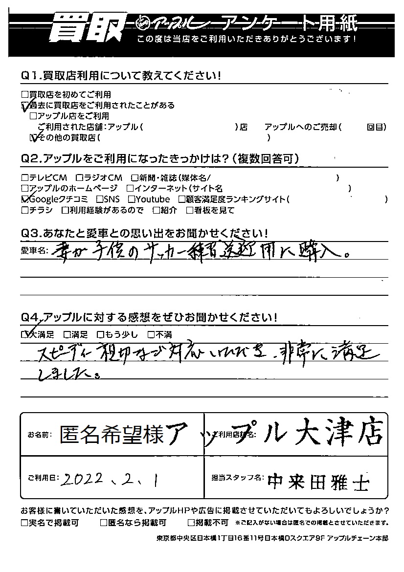 スピーディー親切な対応いただき、非常に満足しました。