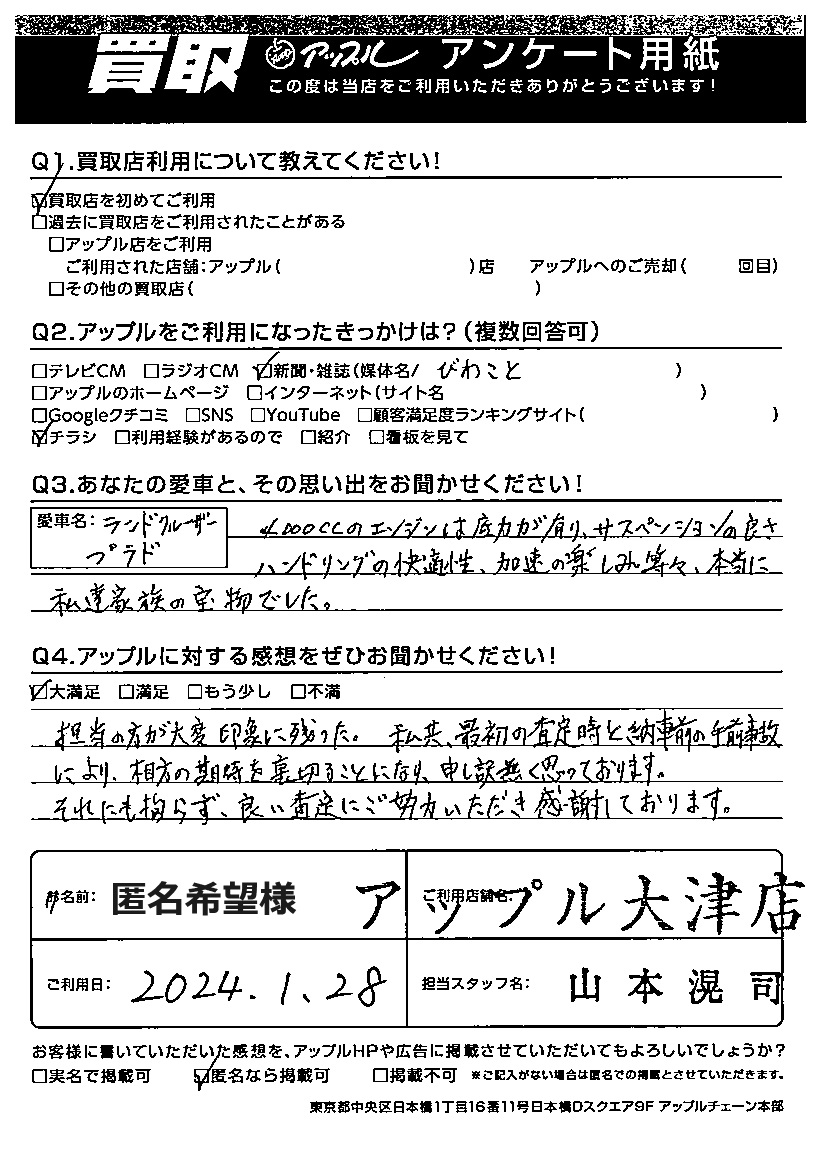 ご利用日:2024年1月28日 担当:山本滉司