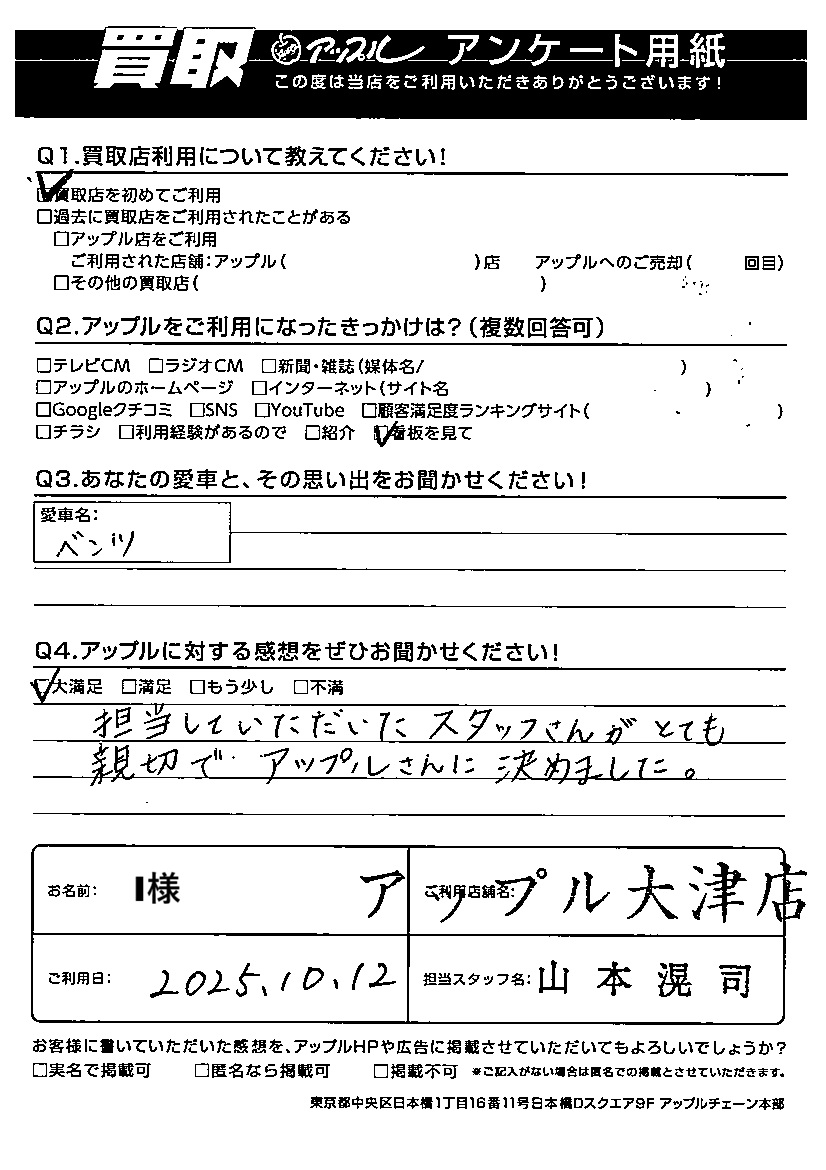 担当していただいたスタッフさんがとても親切でアップルさんに決めました。