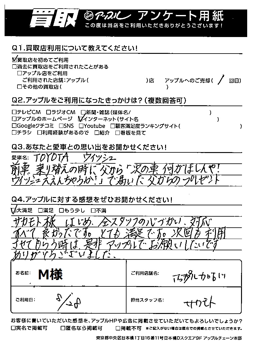 サカモト様はじめ、全スタッフの心づかい、対応すべて良かったです。