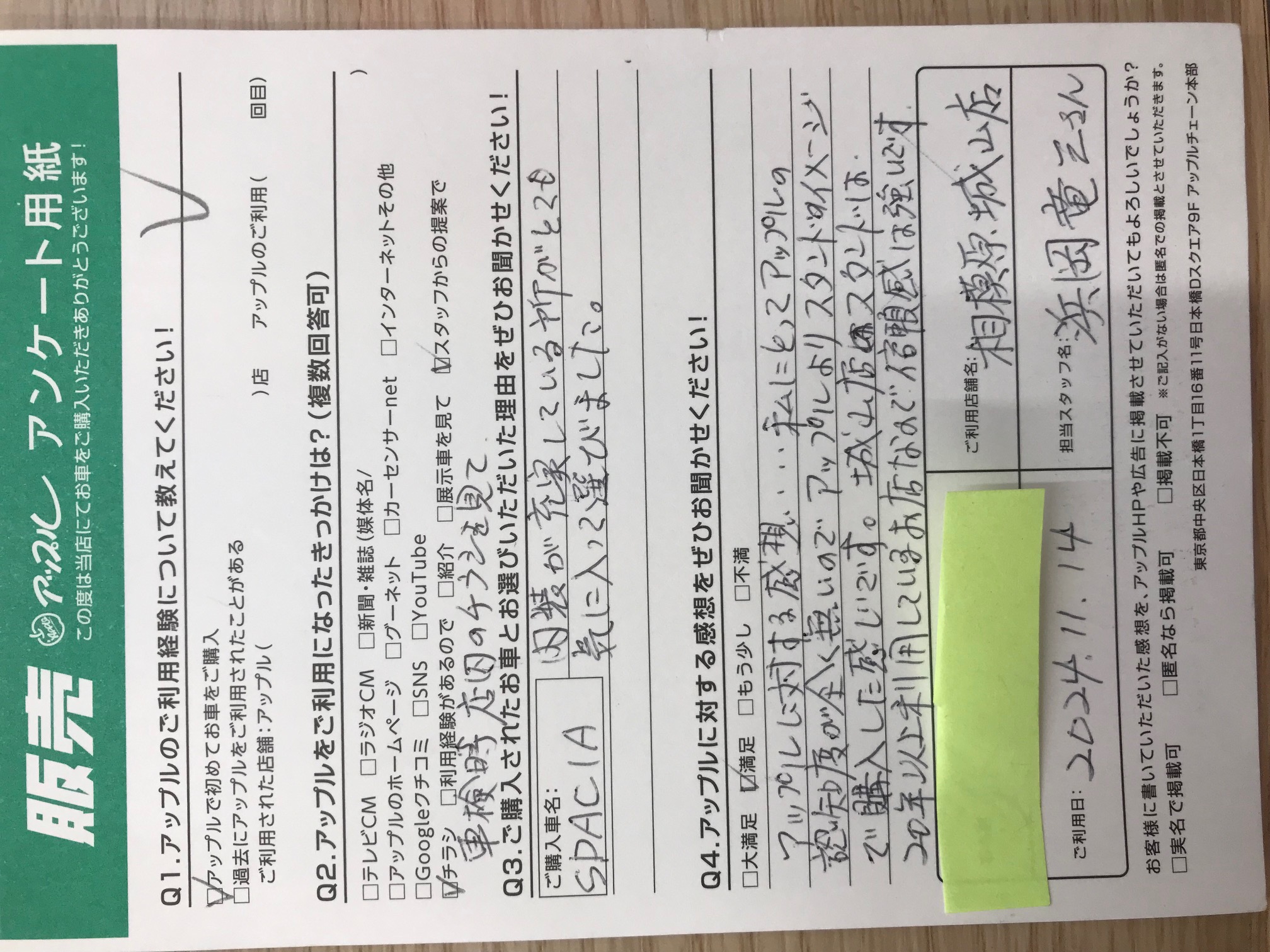 お車のご相談・ 査定だけでもOK! カンタン 入力 30秒 アップルがブランド買取始めました! お電話でも受付中! 受付時間10:00~18:00 0120-782-356 お車のご相談・ 査定だけでもOK! カンタン 入力 30秒 アップルがブランド買取始めました! お電話でも受付中! 受付時間10:00~18:00 0120-782-356 アップルがブランド買取始めました! お電話でも受付中! 受付時間10:00~18:00 0120-782-356 店舗情報 在庫車 スタッフ紹介 ブログ お客様の声 キャンペーン 無料査定 click お客様の声 ご記入日: 2024/11/14 神奈川県相模原市緑区 K様 車名:スズキ スペーシア Q3.ご購入されたお車とお選びいただいた理由をお聞かせください!内装が充実しているところが気に入って選びました。 前へ 次へ お客様の声一覧を見る