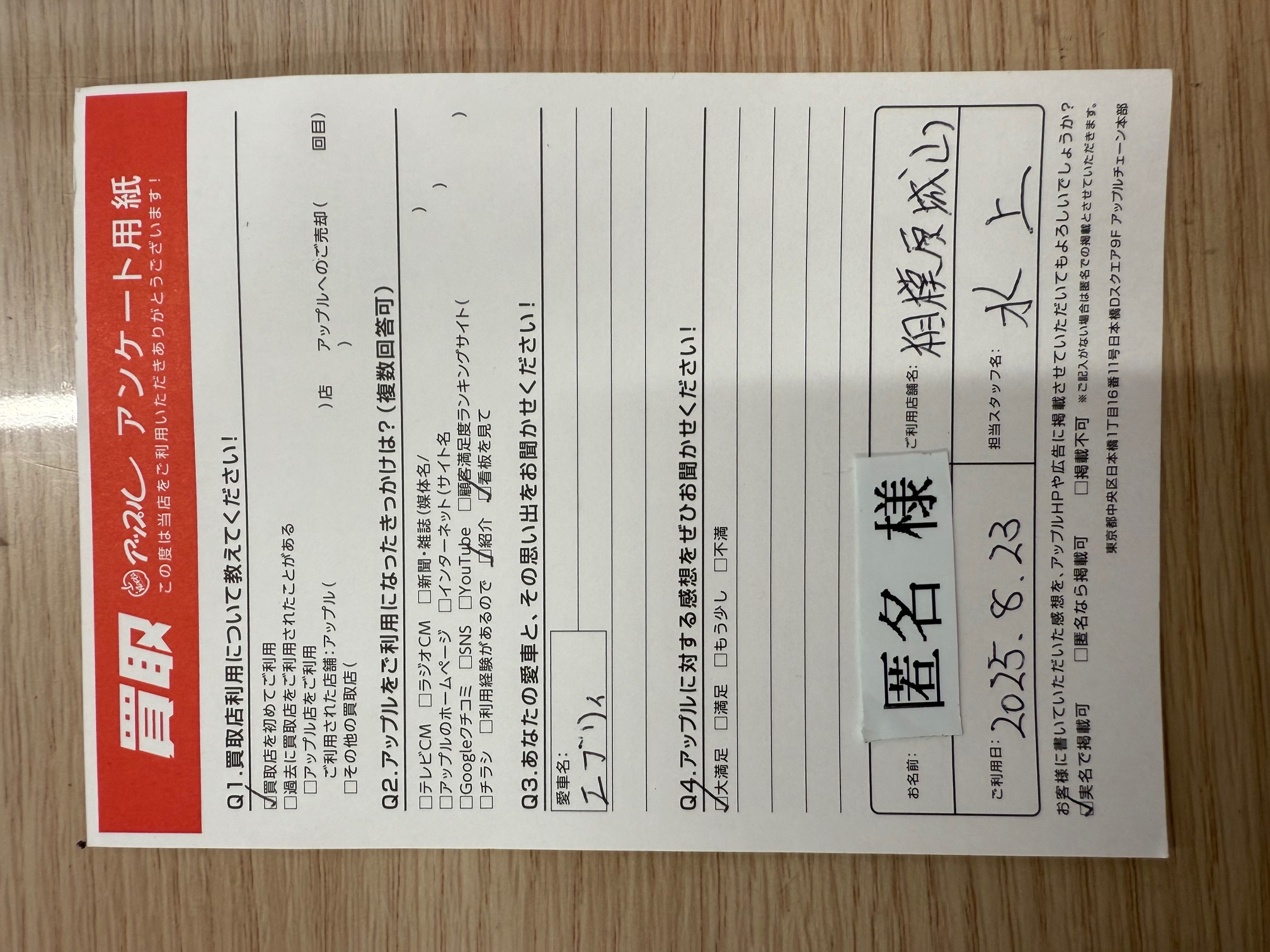 ご記入日: 2025/08/23