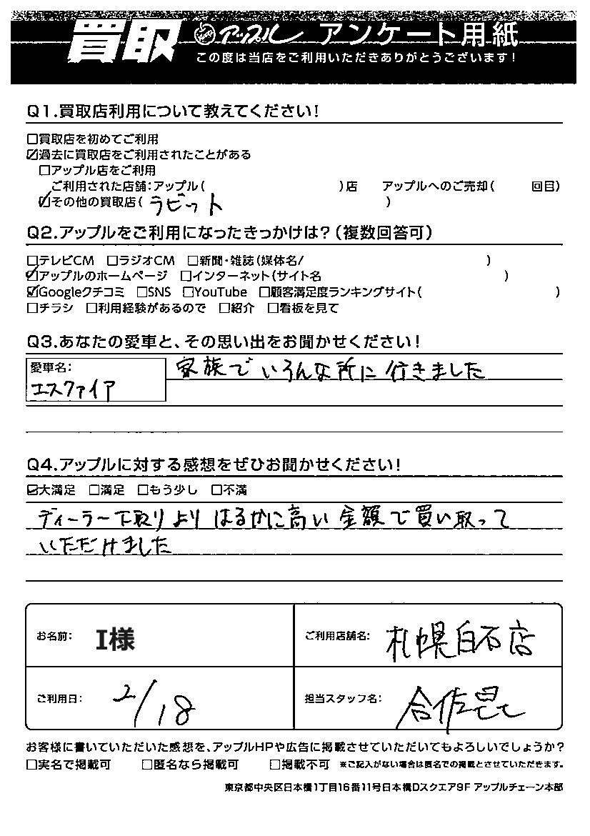 I様 車名:トヨタ エスクァイア