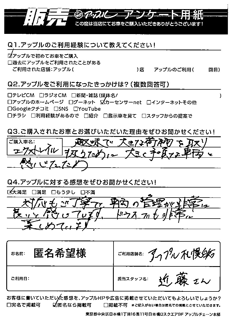 匿名希望様 車名:日産 エクストレイル