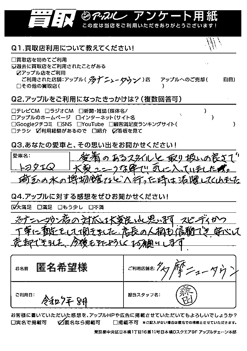 A.過去にアップル店をご利用(多摩ニュータウン店)
