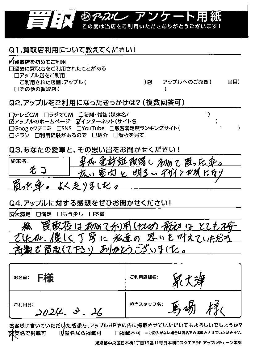 F様 車名:日産 モコ