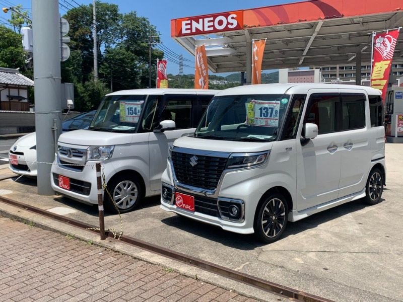 奥から、トヨタアクア、ホンダN-BOX、スズキスペーシアカスタム