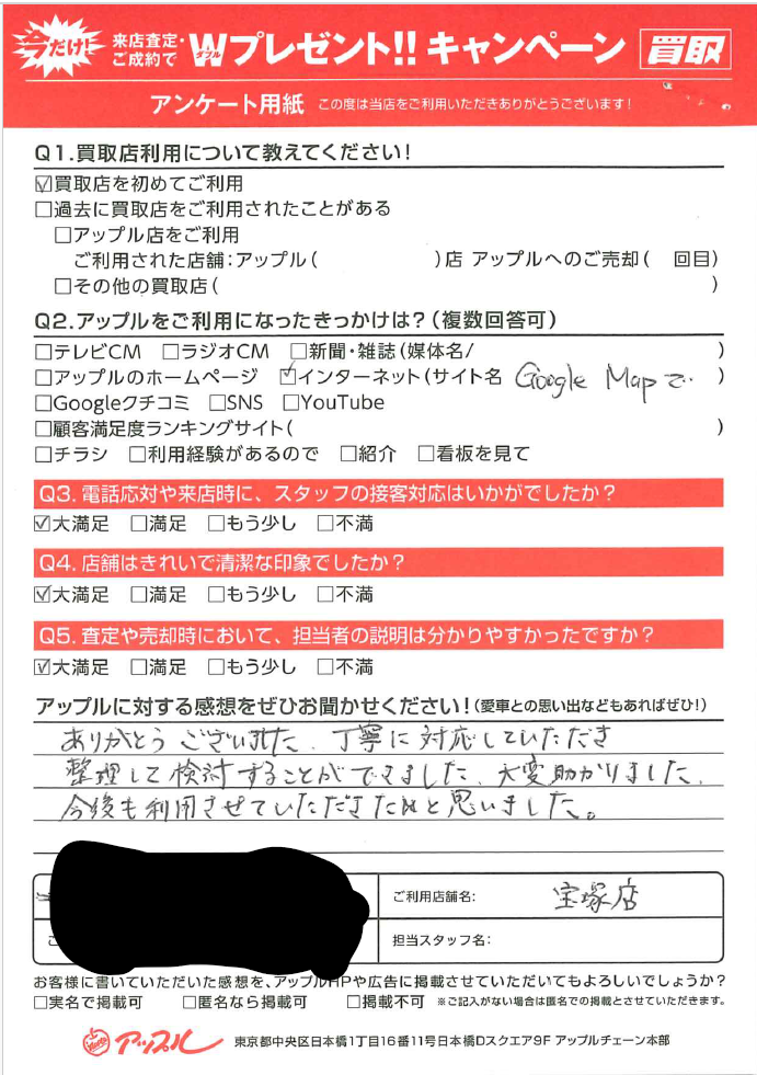 ありがとうございました。丁寧に対応していただき、