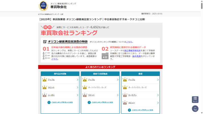 2025年 オリコン顧客満足度調査 車買取会社 初めての買取店 第1位 に