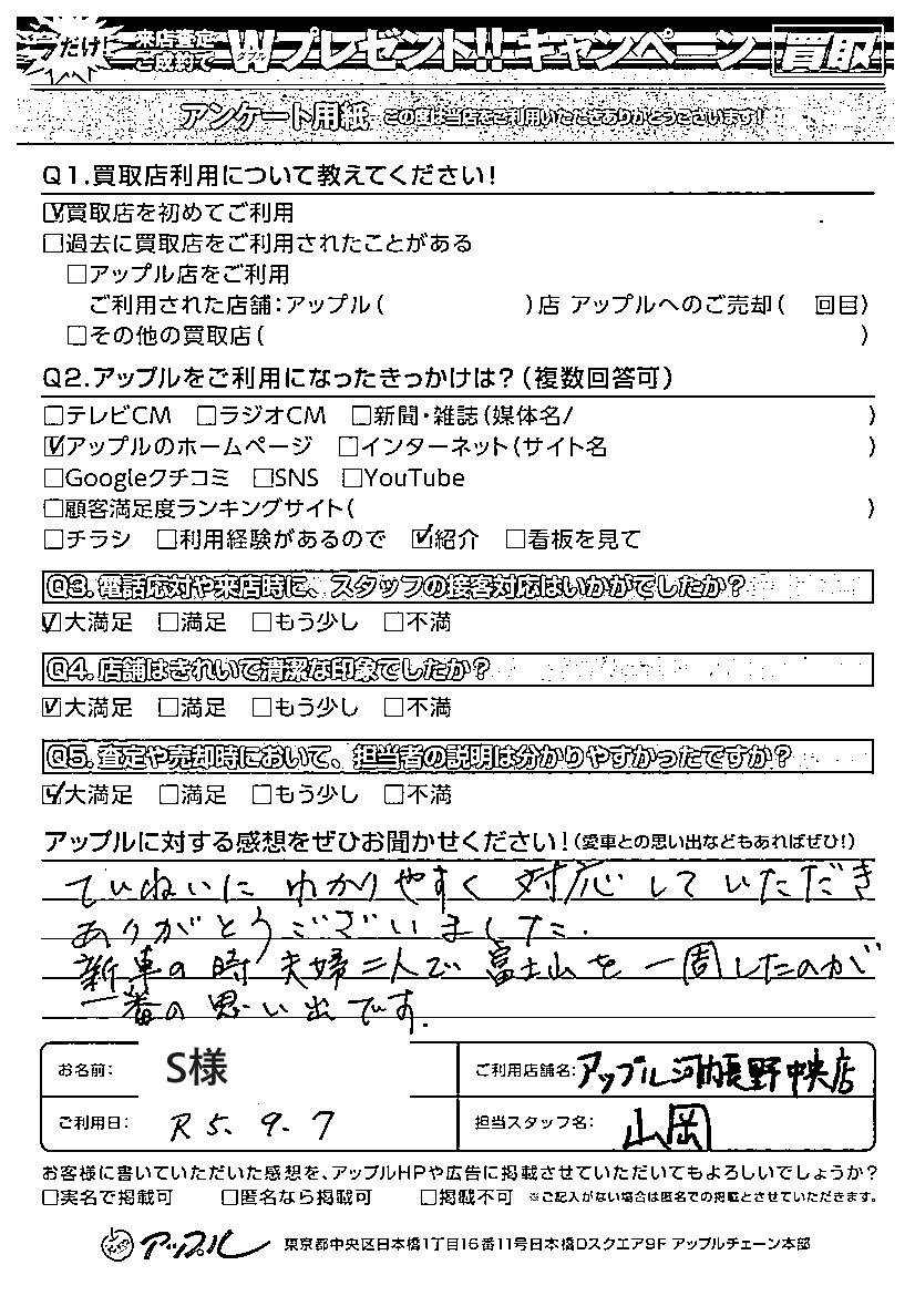 ご利用日:R5年9月7日 担当:山岡