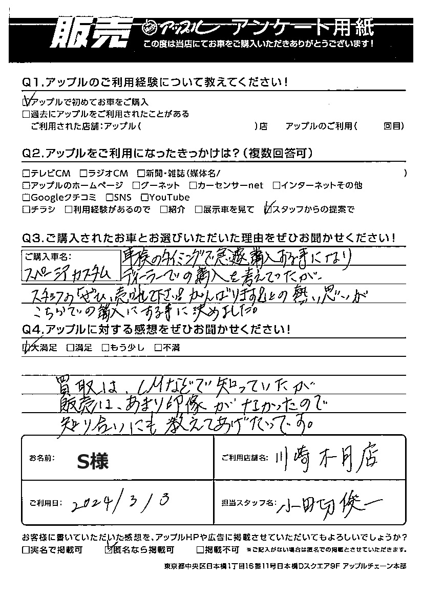 ご利用日:2024年3月3日 担当:小田切俊一