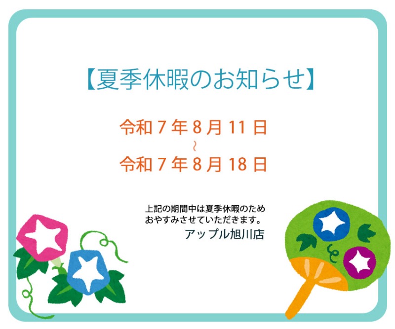 日頃よりアップル旭川店をご利用いただきまして誠に感謝申し上げます。