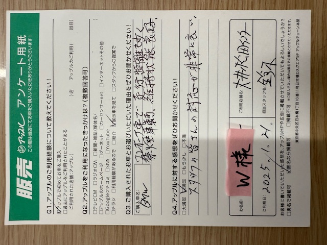 お車のご相談・ 査定だけでもOK! カンタン 入力 30秒 アップルがブランド買取始めました! お電話でも受付中! 受付時間10:00~18:00 0120-626-123 お車のご相談・ 査定だけでもOK! カンタン 入力 30秒 アップルがブランド買取始めました! お電話でも受付中! 受付時間10:00~18:00 0120-626-123 アップルがブランド買取始めました! お電話でも受付中! 受付時間10:00~18:00 0120-626-123 店舗情報 在庫車 スタッフ紹介 ブログ お客様の声 キャンペーン 無料査定 click お客様の声 ご記入日: 2025/01/21 W様 車名:BMW 3シリーズセダン Q3.ご購入されたお車とお選びいただいた理由をぜひお聞かせください!ワンオーナー車で走行距離も少なく禁煙車両、維持状態良好。 前へ 次へ お客様の声一覧を見る